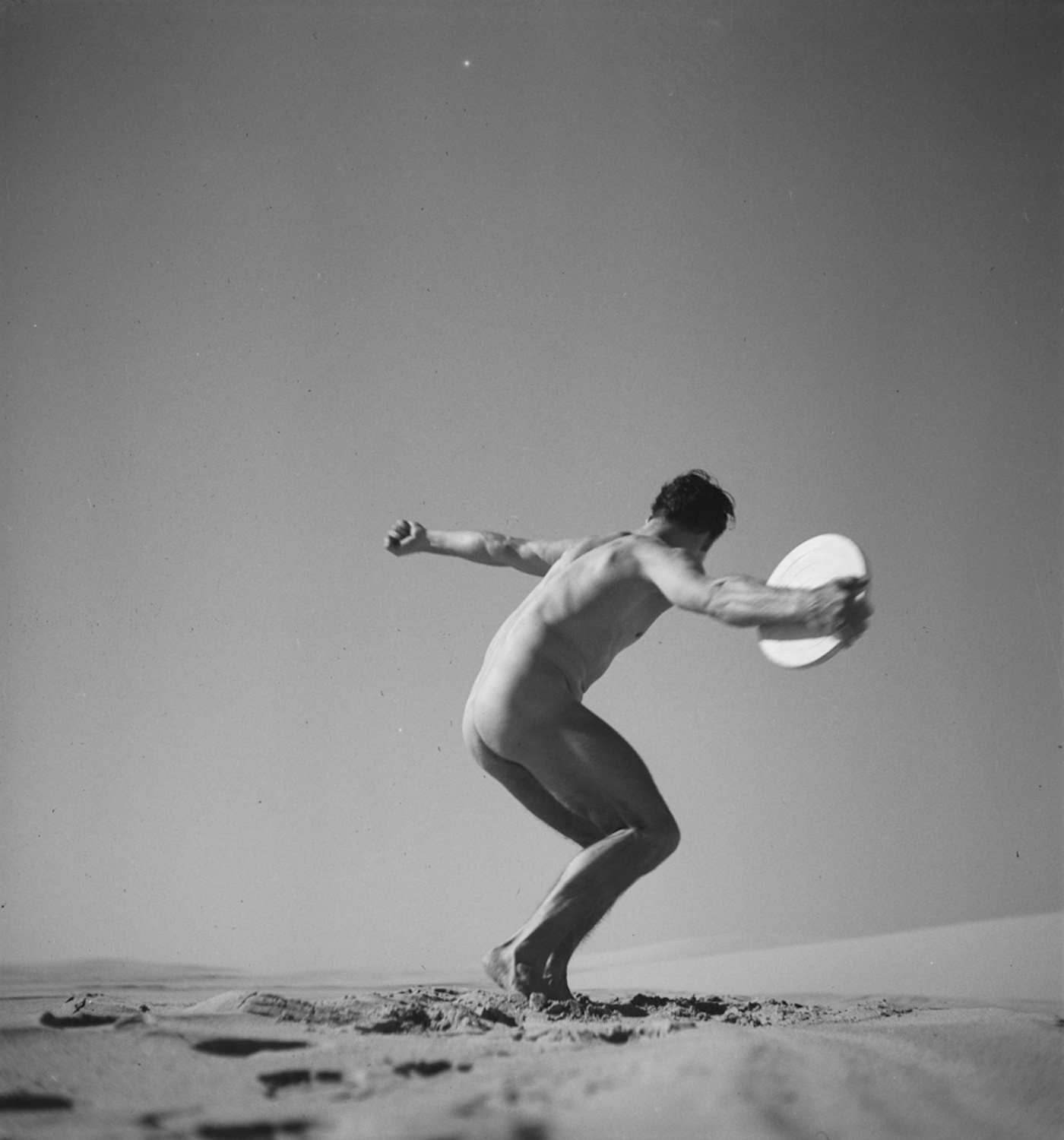 The Sunbaker is Dupain’s most well-known portrait and probably Australia’s most iconic image. It was likely taken in early January 1938 while Max and his friends were camping at Culburra Beach on the NSW South Coast. The appeal of the image is in its simplicity, the austerity of the harsh light and surrounds, and the sensual stillness of the male form. The trianguar shape of the arms and shoulders, along with the sensual curves of the profile and the water droplets on the models skin give the Sunbaker its enduring appeal.